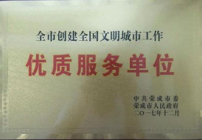 Since its establishment, the company has been awarded the honorary title of "Excellent Property Service Enterprise" by Weihai City Property Management Office and Weihai City Property Management Association; since Rongcheng launched the "Five-Star" service in 2014, the company has been rated as "Five-Star" for three consecutive years. "Star-rated property service enterprise" title; in 2016, it was rated as "Property Management Model Enterprise" by Rongcheng Construction Bureau. In May 2017, the company passed the ISO9001:2008, OHSAS18001:2007, ISO14001:2004 system certifications, and was recognized as a famous service brand in Shandong Province in the same year; in December 2017, it was awarded by the Rongcheng Municipal Party Committee and the municipal government as a "high-quality Service unit"; In March 2018, it was awarded the honorary title of 2017 "Gold Property" by the Rongcheng Municipal Party Committee and Municipal Government; in 2019, it was rated as "Excellent Enterprise" by Weihai Association.